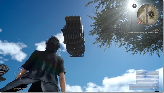 It all starts with a tutorial segment that involves our heroes’ car breaking down. With the Regalia immediately out of commission, it’s up to the quartet to push it to Hammerhead, the outpost where Cindy will apply improvements to the Regalia and Cid will upgrade Noctis’ weapons. Right from the start, we get a situation that isn’t unfamiliar to young people on a road trip. Unexpected car troubles come up. Your money ends up drained. You have to find a new way to get money or adjust your budget. While real life means borrowing cash from family or friends or relying on credit cards, Final Fantasy XV uses this as an opportunity to introduce us to the tipster tips, battle system, fetch quests, resource gathering, and world.