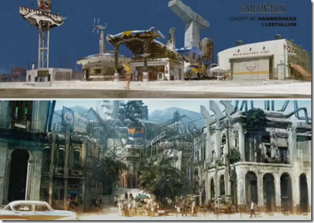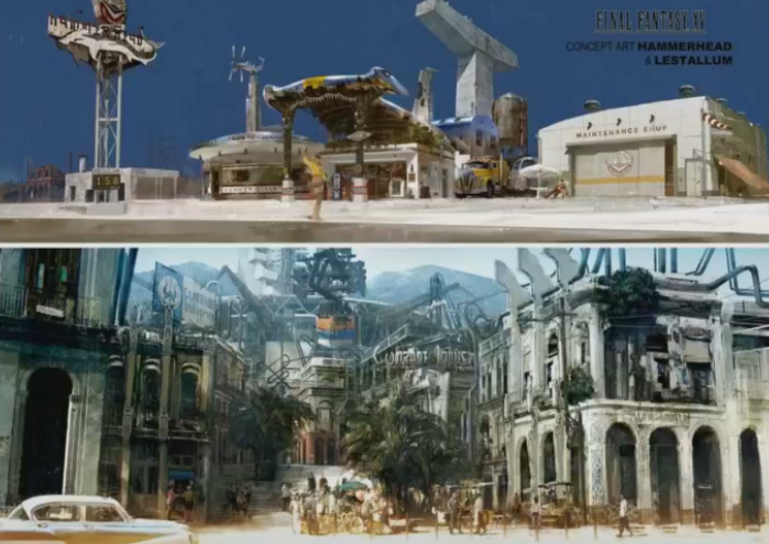 During the Active Time Report, Hajime Tabata shared some details on the game’s concept art. The top is the Hammerheard, where you meet Cindy. It’s based off the shark, as the Final Fantasy XV developers are actually quite fond of them. It was hinted that the owner is a an engineer that everyone who plays Final Fantasy will be familiar with. As for the town shown on the bottom, it’s a look at Lestallum a city whose power is generated by Meteor via a large structure.