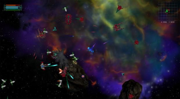 Players can absorb various kinds of space ships as they roam the galaxy. Once they do so, they can switch to one of these different ships on the fly, or summon them to back them up in a fight as an AI combatant.