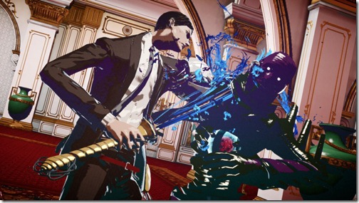 When Killer is Dead protagonist, Mondo Zappa, isn’t out seducing attractive women or getting a peek at their undergarments using his see-through sunglasses, he’s out fighting enemies, and lots of them. Now, Kadokawa Games have introduced some combat features in the game. In combat, Mondo will be using his beloved katana, called Gekkou, which has the ability to absorb blood from his enemies. You can start out by continuously performing combos. The more combos you do, the higher the combo level increases. Once it reaches the max level, you’ll have a choice of four different finisher moves, called Final Judgment. The four finishers will grant items with bonus effects such as Health Gauge increase, Blood Gauge increase, health recovery and skill level up. The items acquired depend on which finishers you use. Here’s a look at the four Final Judgment finishers. Assassination