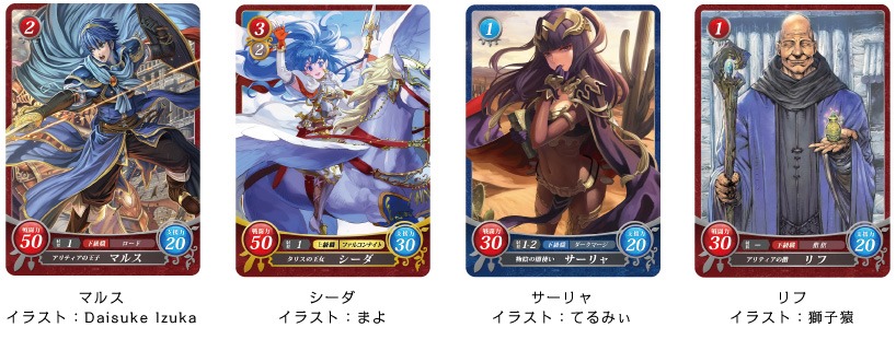 The cards that were shown are of Marth, Caeda, Tharja, and Wrys.