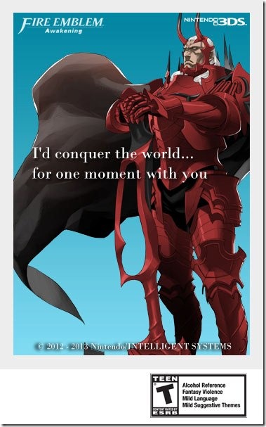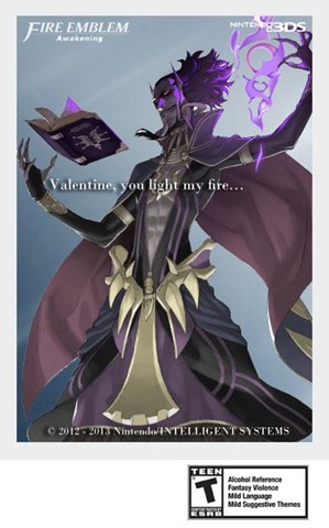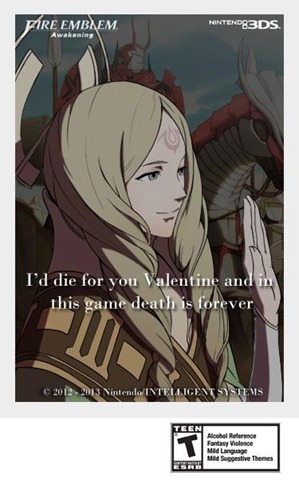 The characters from Fire Emblem: Awakening are celebrating Valentine’s Day. Nintendo of America put a few amusing Valentine’s Day-themed cards featuring characters from the game up on their 3DS Facebook page. Here they are: