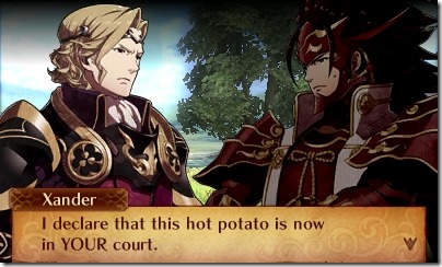 These versions of Xander, Ryoma, Camilla, Hinoka, Leo, Takumi, Elise, and Sakura and their retainers aren’t based on the characters you’re using in your game, so levels and skills are predetermined. In the case of Xander’s side, he’s a level 5 Paladin with a stick, umbrella, and Dracoshield. He’s accompanied by a level 3 Hero version of Laslow with an umbrella, bone axe, and Allegro Harp and level 3 Great Knight Peri with a bottle, Raider Axe, and Azura’s salve. They all have A-level supports with each other. Keep your group together, make use of the items you earn from beating enemies, and you should be fine. When you win, you’ll get to see the sibling you chose in a swimsuit on a beach, engaged in vacation activities.
