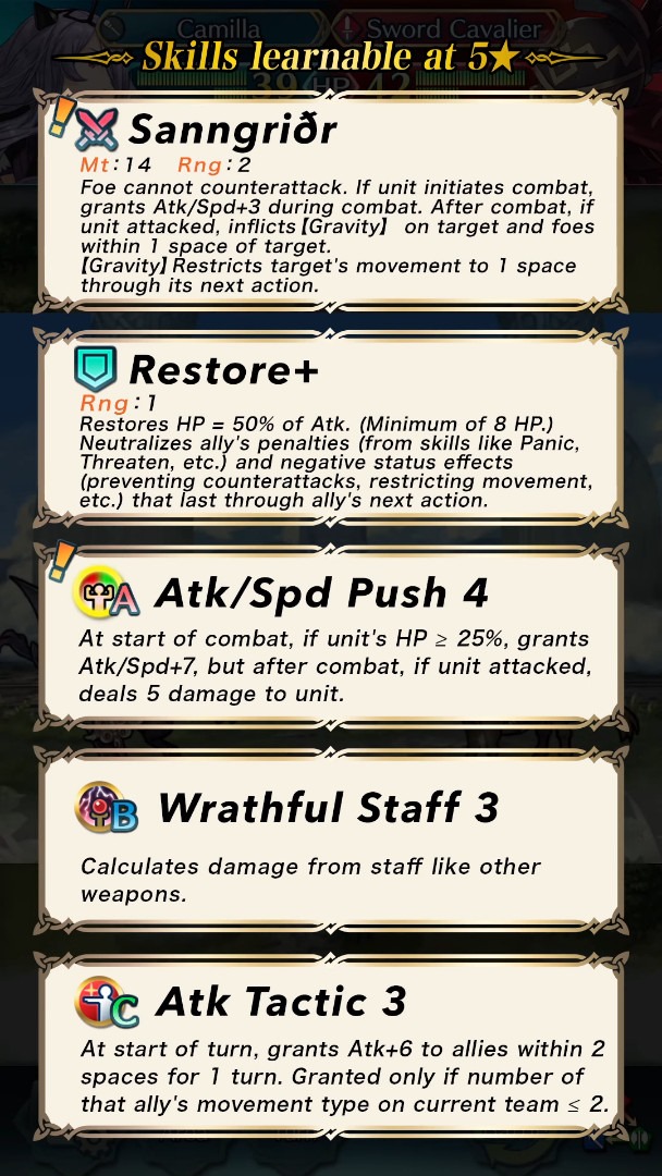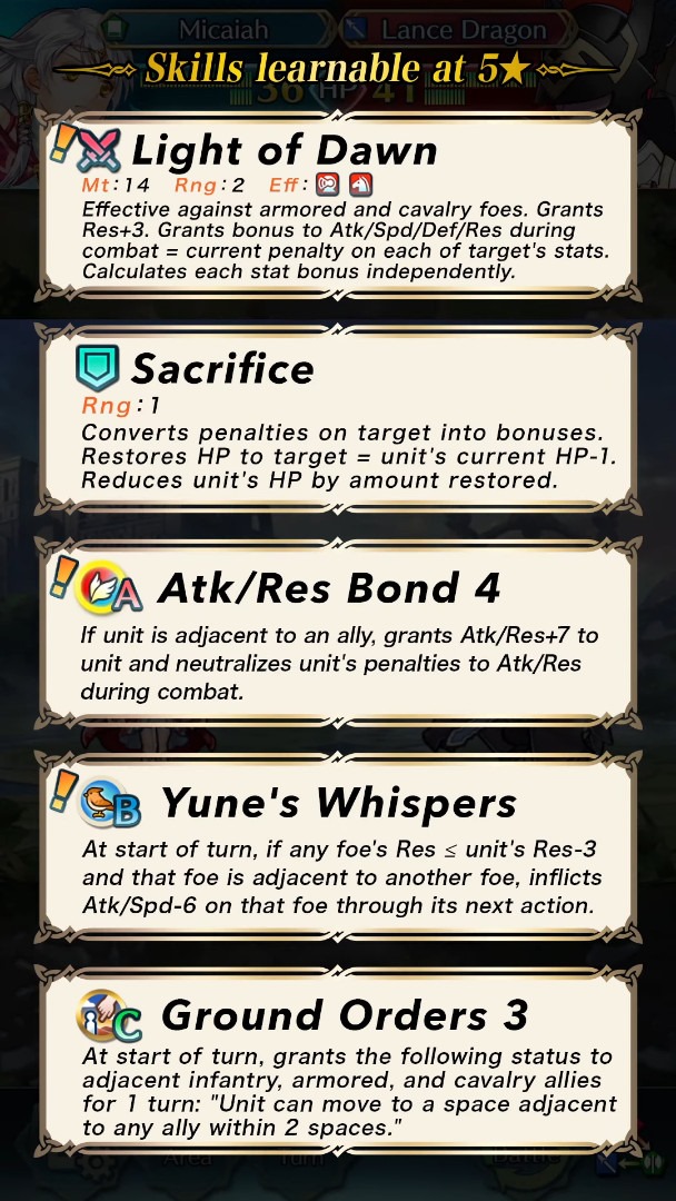 Here are more details on Camilla, Eliwood, Micaiah, Alm and their skills learnable at 5★: