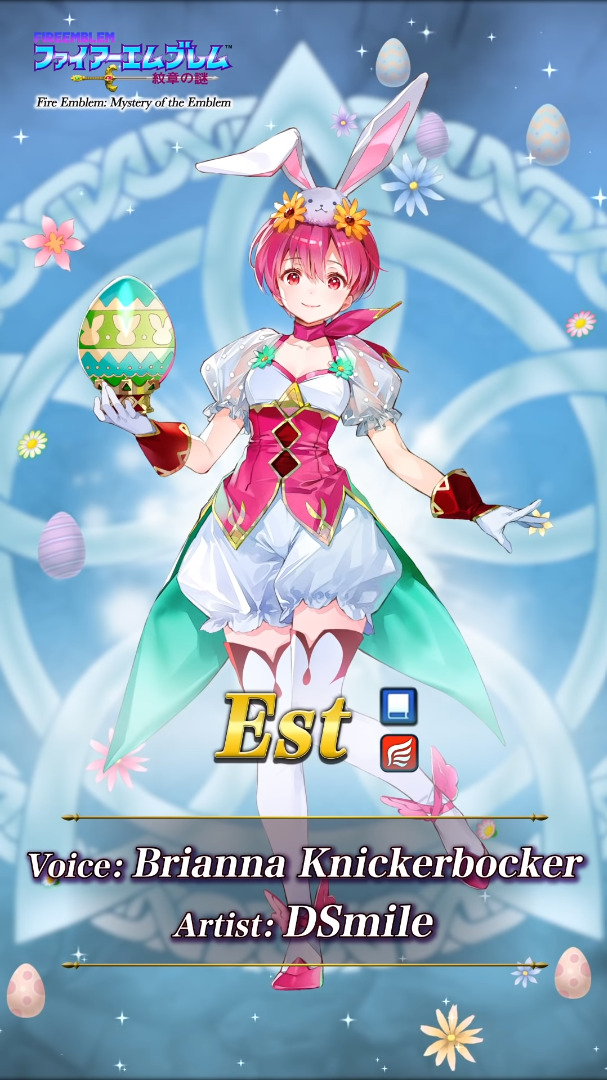 The latest seasonal banner in Fire Emblem Heroes will surely put a spring in your step, as it features Spring-themed bunny costumes for Est, Fir, Narcian, Idunn & Fae, and Bartre. Est in particular rounds out the set of Spring-themed Whitewing sisters, as Catria and Palla have already gotten Spring seasonal versions. Check out the trailer below: Check out their skills and artwork below: Est: Springtime Flier