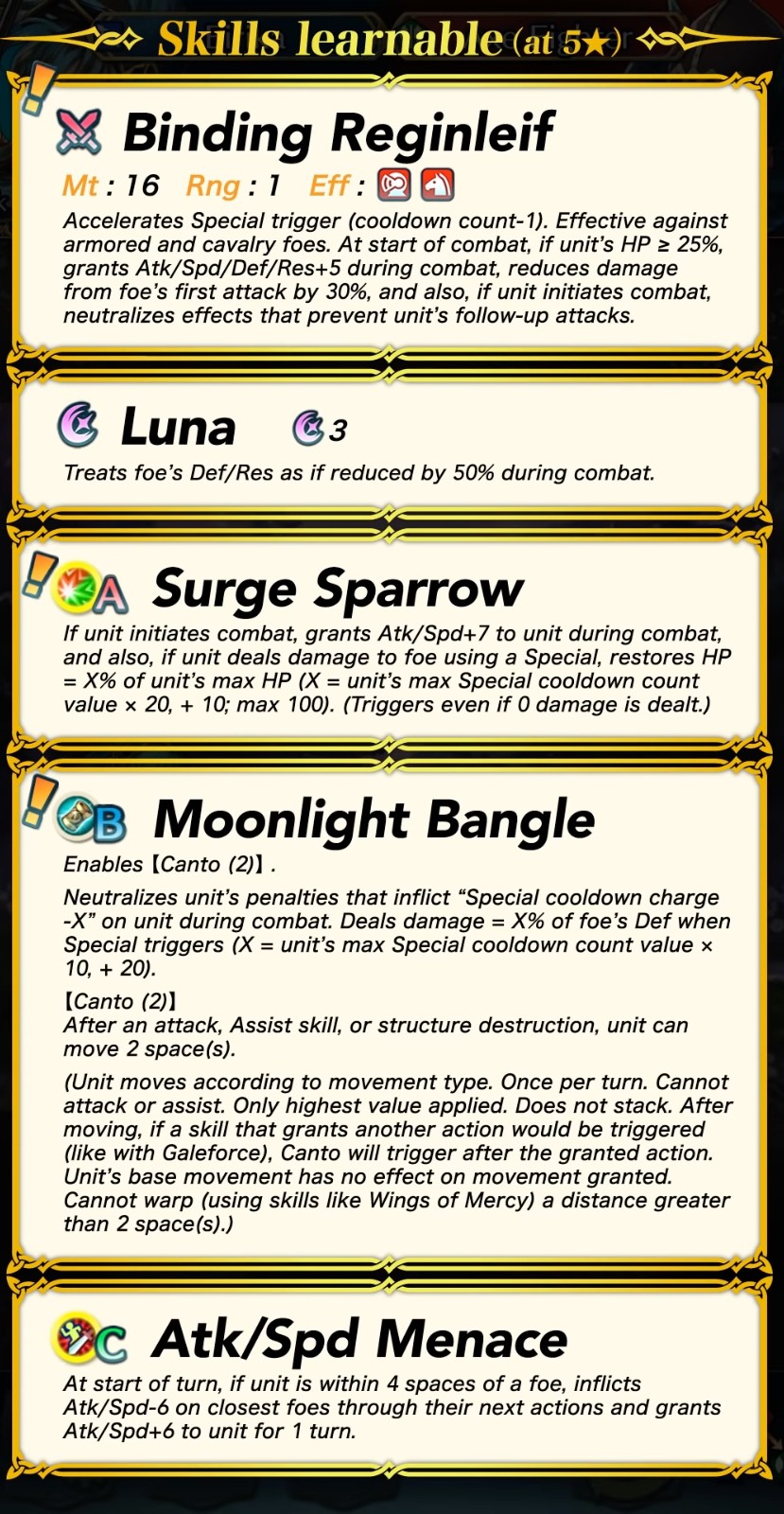 Finally, there’s the newest version of Marth in Fire Emblem Heroes. He wields the Genesis Falchion and has Shining Emblem as his unique Special. He also knows Distant Pressure, Spurn 3, and Even Tempest 3.