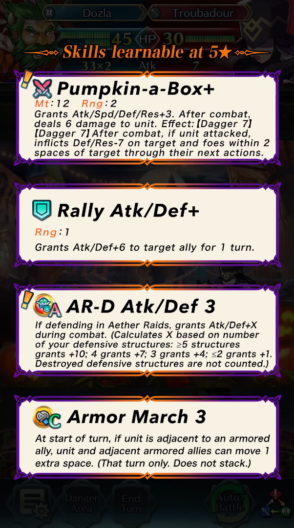 While we got a sneak peek at this year’s Halloween special Heroes during the Feh Channel update, an official trailer and skill list has released for the upcoming focus Heroes. The Heroes in question are Hector with Lilina, L’arachel, Dozla, andIlyana, with Rolf as the hero given out for the upcoming Tempest Trial. Check out the Heroes and their skills and art below: Ilyana: Treat Harvester