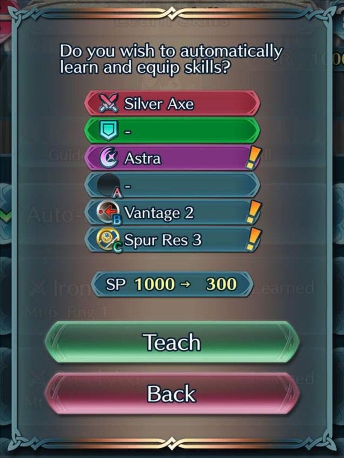 A new ‘Auto-learn’ feature will be added to Fire Emblem Heroes which makes Allies automatically learn as many skills as possible with the accumulated SP. Skills that fill empty slots will be prioritized.
