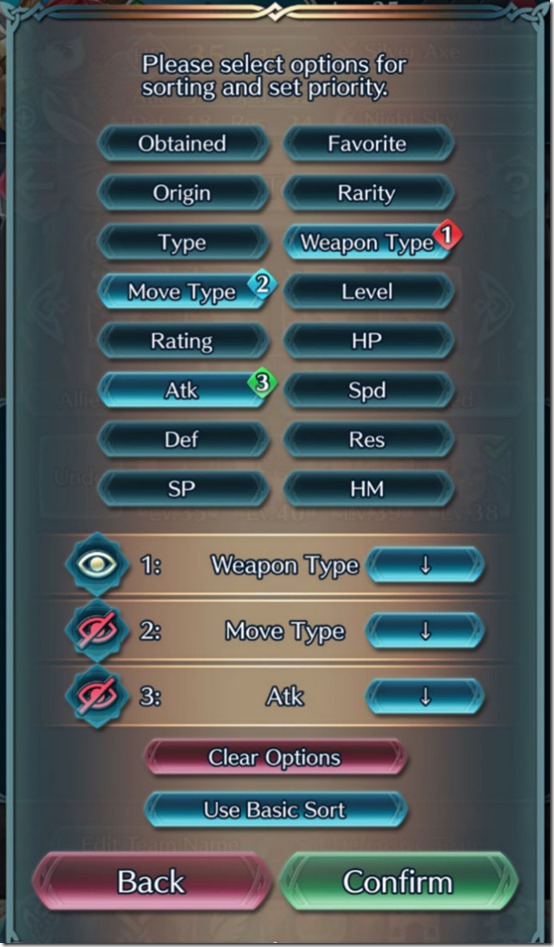 More functionality to sort your allies has been added. Now, up to three sort conditions can be used simultaneously to sort your Heroes. Info Added to Summoning Screen