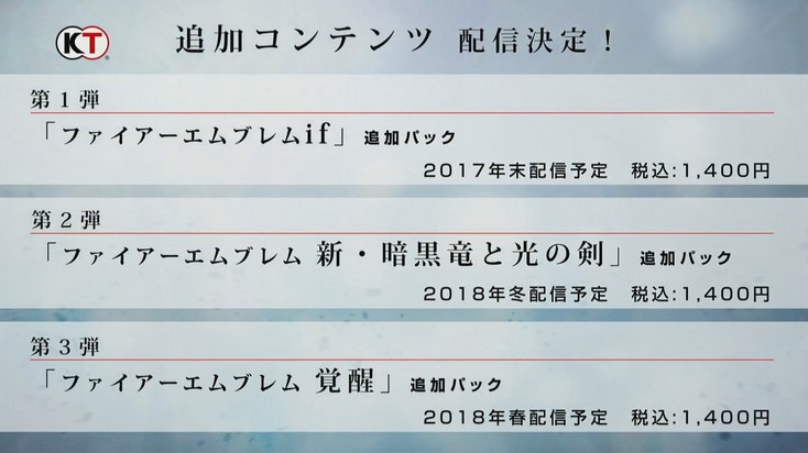 Koei Tecmo announced at TGS 2017 that Fire Emblem Warriors is getting three DLC expansion packs for Fire Emblem Fates, Fire Emblem: Shadow Dragon, and Fire Emblem Awakening