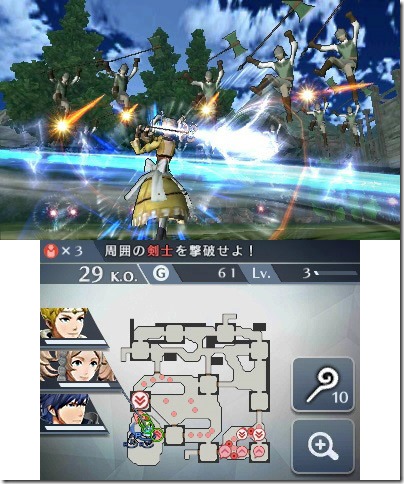 Here’s a look at Lissa kicking some butt along with a look at some info and the map on the bottom screen for the New 3DS.