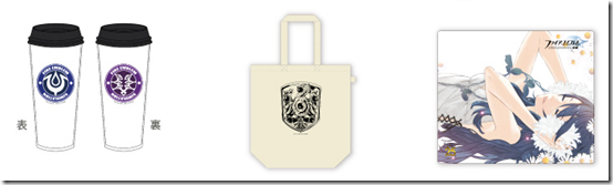 Tumbler cup with logos on front and back (1,500 yen), a tote bag with a Fire Emblem emblem (1,500 yen), and another limited item with the 304mm x 257mm photo frame, which will be limited to 50 total (7,000 yen).