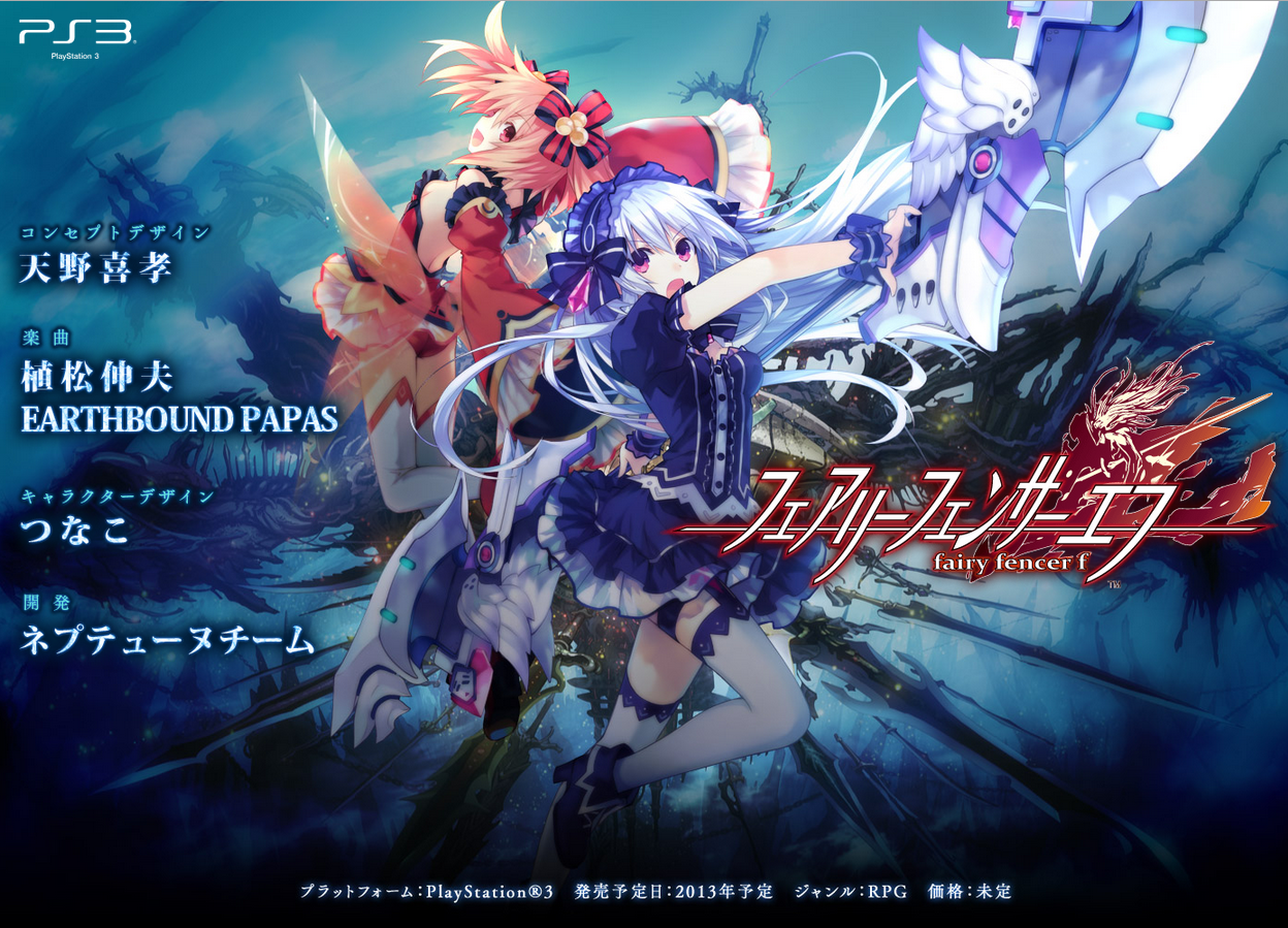 Fairy Fencer F has Yoshitaka Amano as a concept designer, music from Nobuo Uematsu’s band Earthbound Papas, and characters designed by Neptunia & Date A Live artist Tsunako. The Neptunia team is developing Fairy Fencer F which will be released for PS3 this year.