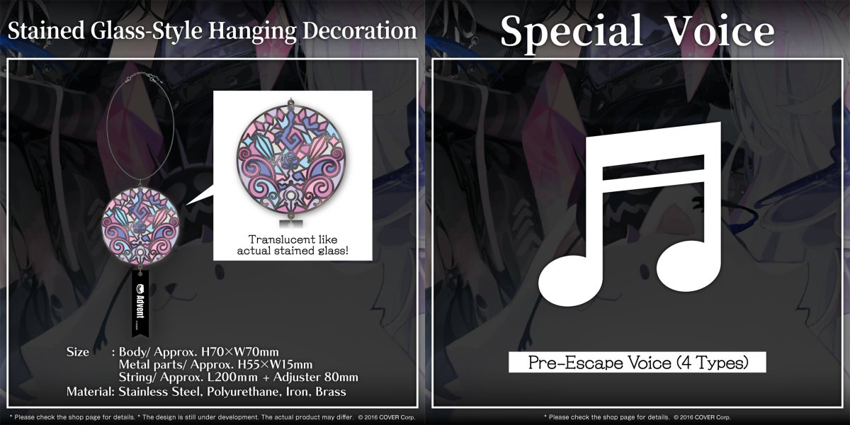 Now that Hololive English Advent debuted, Cover announced an array of merchandise and shared their first original song, “Rebellion.” With the items, there are digital Starting Voice packs for each Vtuber and a Debut Celebration collection of items. As for the song, people can listen to the single online or watch a music video for it. With the Debut Celebration items, there’s no big “bundle.” Everything is available piecemeal. There are four “pre-escape” voice packs for $8 each, with Fuwawa and Mococo’s being bundled together as one pack. As for the physical items, there’s a $26 acrylic panel showing all four Vtubers, $6 acrylic magnets for all five performers, $11 acrylic stands for all five of them, and a stained glass-style hanging decoration doesn’t show any of the new members, but does feature iconography from the group. Here’s a closer look at the new merchandise: