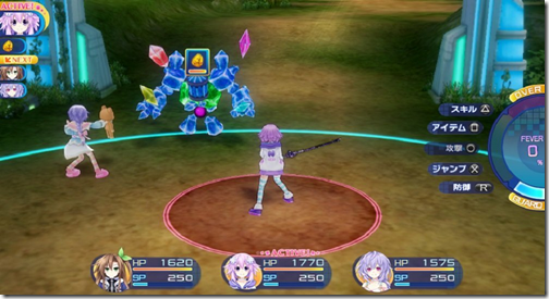 Hyperdimension Great War Neptune Vs. Sega Hardware Girls appears to have a similar battle system to other games in the Neptunia series. Players have three characters in battle with the usual RPG commands: skill (triangle), item (square), attack (circle), jump (X), and defend (R).