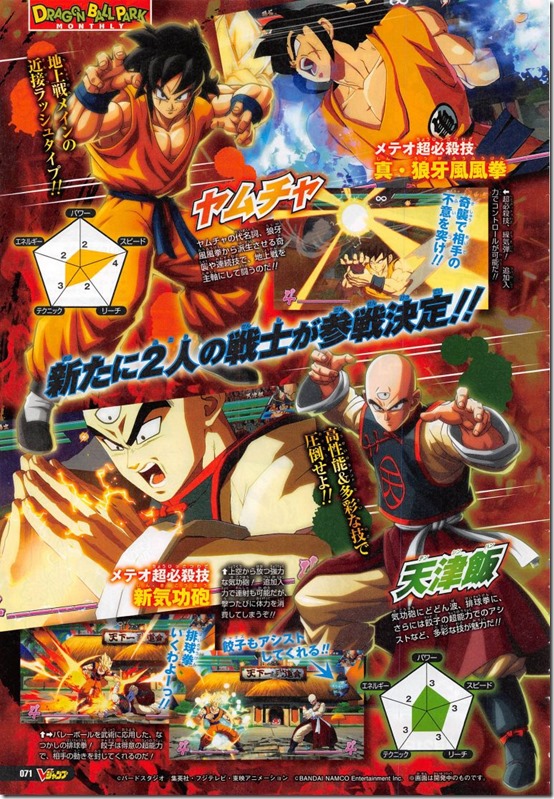 And here’s a first look at Yamcha who uses his Spirit Ball special and Neo Wolf Fang Fist super. Tien Shinhan is shown using Neo Tri-Beam Meteor super and a look at Chaozu as an assist character. Dragon Ball FighterZ releases in February 2018 for the PlayStation 4, Xbox One, and PC.