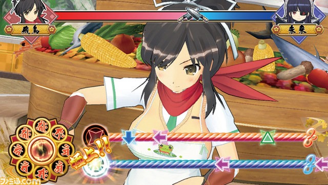 During last night’s Senran Kagura stream, we also got a look at the spinoff cooking and rhythm title, Dekamori Senran Kagura. While the teaser didn’t share any gameplay details, this week’s Famitsu shows that it’s a game where you can control the lady ninjas cooking in a rhythm game. Your goal is to to defeat opponents by making bigger mounds of food to score more points, which can be done by matching the rhythm and pressing the buttons. Missing will cause your character’s clothing to tear off. I’m not exactly sure how that works, but hey, it’s Senran Kagura. Dekamori Senran Kagura will be coming out for PlayStation Vita on March 20th. Meanwhile, Senran Kagura 2: Deep Crimson is scheduled for release on August 7th for Nintendo 3DS.