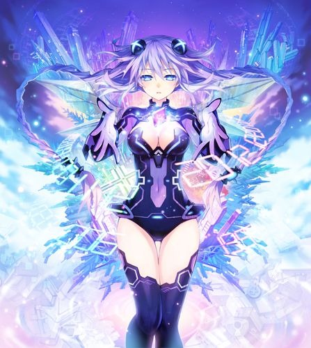 Noire, Blanc, and Vert from Hyperdimension Neptunia return, but in Neptunia V they’re a bit different. Noire isn’t a goddess yet. Blanc sounds about the same, a demure girl who goes berserk when she flies off the handle. Vert is a diehard gamer who lives in Leanbox across the sea.