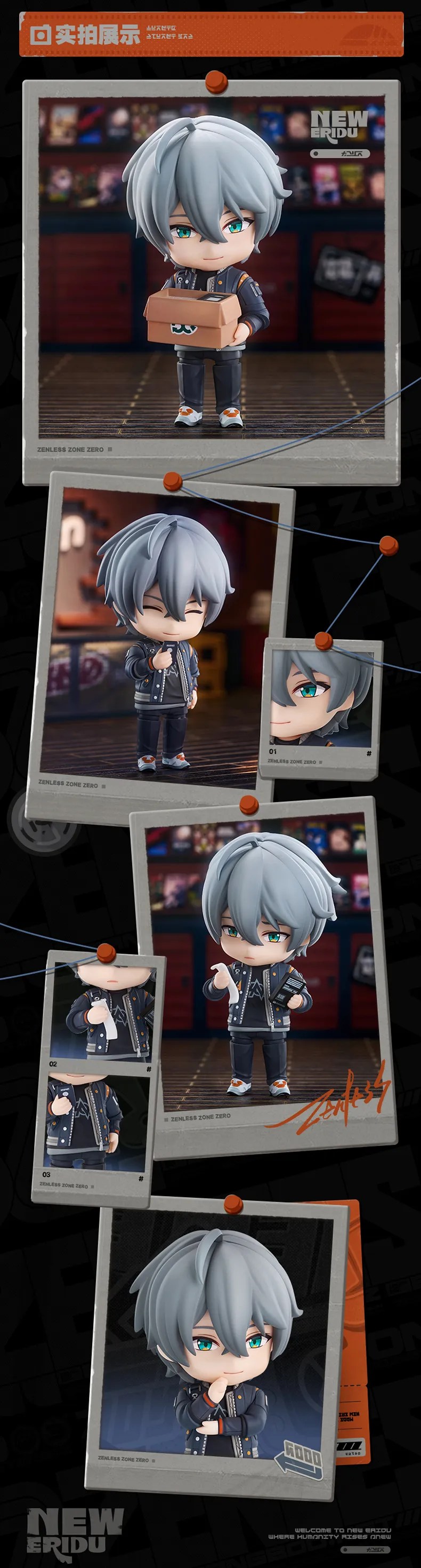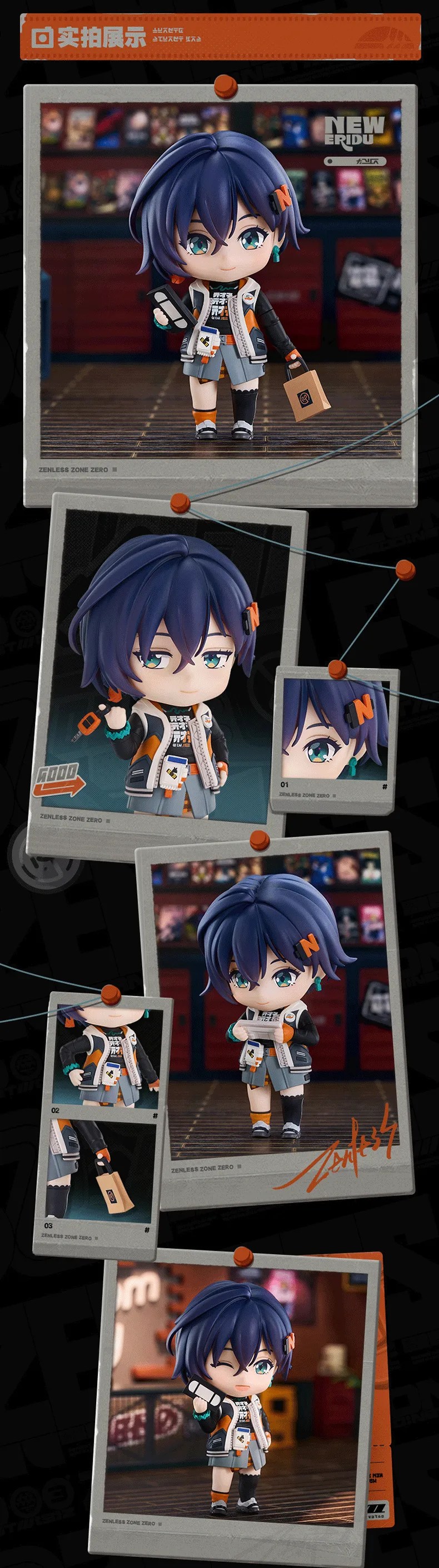 The official MiHoYo Gift site featured some infographics with additional images highlighting the face plates, accessories, and possible poses Belle and Wise Zenless Zone Zero Nendoroids. In addition to the first face plate Good Smile Company shared, he’ll have one where he’s smiling with both eyes closed and a sad expression. His accessories include a VHS tape, a tape box, a receipt, and a cardboard box filled with tapes. Belle features her winking expression, as well as smiling and sly ones. Her other accessories include the VHS tape we saw in the other photo, the key for the siblings’ van, a paper bag, and a handheld gaming console.