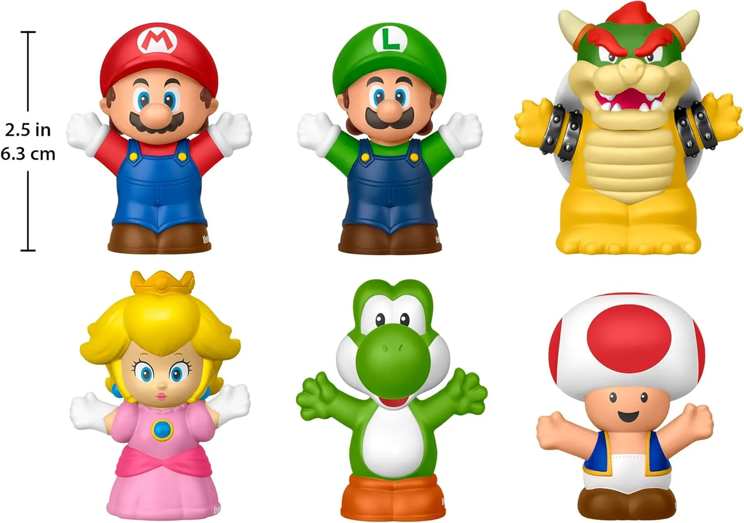 The set of six figures is the most basic item in the collection. That gets you six My Mario Little People of Mario, Luigi, Princess Peach, Bowser, Yoshi, and Toad. Each of these are about two and a half inches tall. Those seem to be shipping immediately, with the Amazon listing saying people could expect them between January 30, 2026 and February 11, 2026.