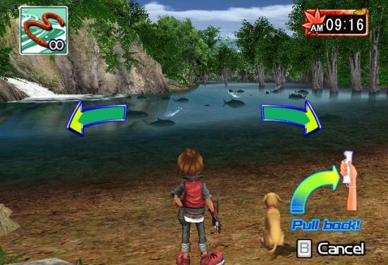 I also liked that the on-screen cues and images were clarified in Fishing Master World Tour. The scale that appears at the top of the screen once a fish is on the line clearly shows a meter telling you how the fight’s going, and how close you are to either having the fish escape or break the line. When you need to wave the remote left or right while fighing a fish, a clear remote image appears on the either the right or left side of the screen and moves, letting you know you better fling the remote in that direction if you want a fish. Also, as I mentioned earlier, it is much easier to see and identify special fish.