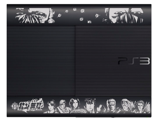 Tecmo Koei and Sony Computer Entertainment Japan are making a special slim(mer) PlayStation 3 for Japan. The Fist of the North Star: Ken’s Rage 2 Legend Edition console has Kenshiro and Raoh’s fierce eyes on the top and a character ensemble on the bottom. The Charcoal Black console has a 250 GB hard drive, a copy of Fist of the North Star: Ken’s Rage 2, pre-order bonuses (a smartphone pouch and a code to download a costume), and a specially designed DualShock 3 controller.