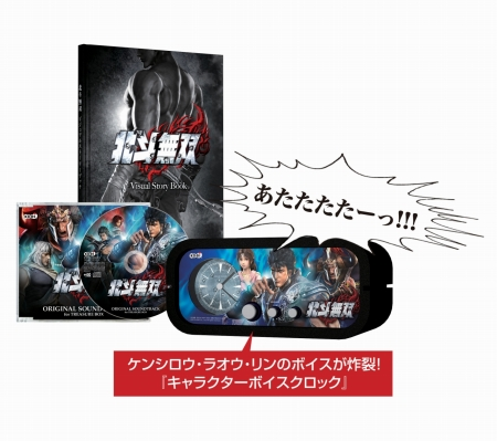The Hokuto Musou treasure box contains: the game, a visual story book, original soundtrack, and a character voice clock that wakes you up with “Atatata!!” Prepare to fork over 13,440 yen ($150) for the treasure box. A standalone game costs 8,190 yen ($91).