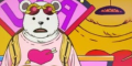 While all of the characters are wearing fairly casual summer outfits, Bepo and Bartolomeo seem particularly invested in Uta. For example, Bartolomeo has her name on his pant leg and sleeve, as well as around his left eye. Meanwhile, Bepo has what appears to be a fan with her name on it on his back. According to the tweet, even though the pirates and the Marines are both there for Uta’s performance, they are a breath away from starting a fight.