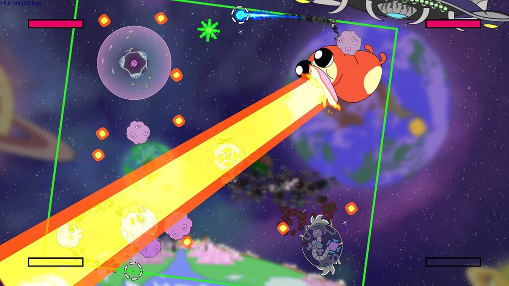 Fly Punch Boom! looks to draw out a few chuckles with its lighthearted, but damaging, fatalities as well. Players can end a fight in each of the stages through hurling players into hungry fish, blasting them through the planet, or cause a catastrophic explosion in an orifice the moon probably shouldn’t possess.