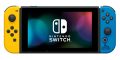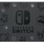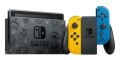 This is a Switch bundle more along the lines of the one released for Animal Crossing: New Horizons. Each part has Fortnite designs on it. The dock is covered with icons from the series. On the back of the Switch unit itself, there is essentially a tile pattern with those same figures. A pair of Joy-Cons, with the left one yellow and right blue, are included. The blue one has the Battle Bus with the “Home” button in the middle of its balloon.