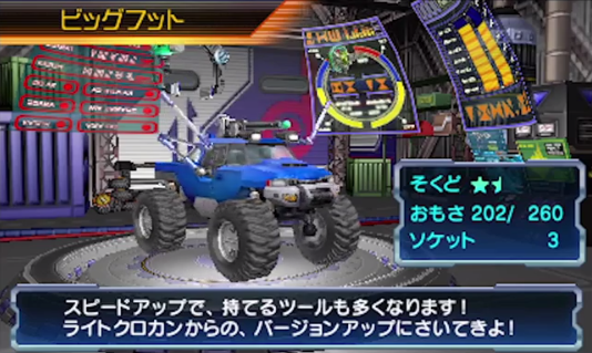 You can drive a speedy racer, a buggy, or a tracking car that can find fossils. Cars can be further customized by equipping different parts. If you run into a dinosaur with your car you can use support guns to attack first.