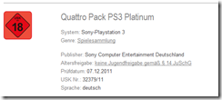 The USK rated Quattro Pack PS3 Platinum, which sounds like another four pack of games. Since this bundle is rated 18+ it may have games like God of War III, Resistance: Fall of Man or Killzone 2 in it.