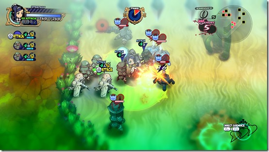 There are several gimmicks and strategic elements that can help the player out in the game. Relics are ancient structures that can be found on the field, and can be used as a trap or healing spot after it is captured. Also, by coordinating and alternating attacks with your troops, enemies will drop items and as well as money.