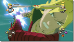 Naruto Shippuden: Ultimate Ninja Storm 2 will give fans a chance to control Naruto in his four-tailed form. Screenshots show a story scene where a partially transformed Naruto battles Orochimaru.