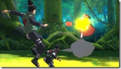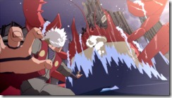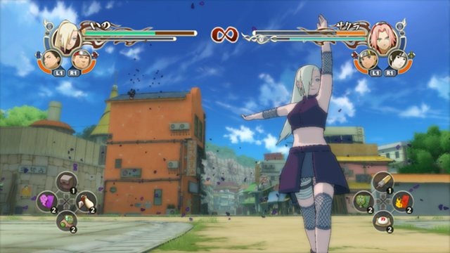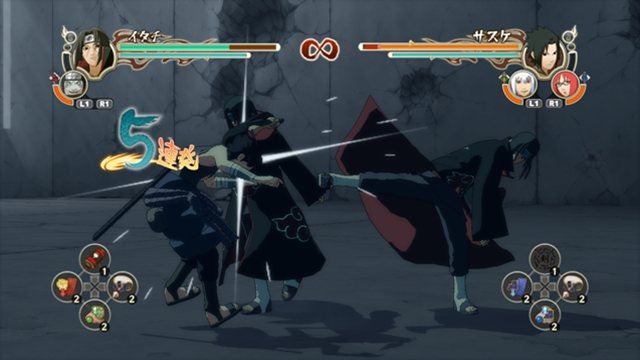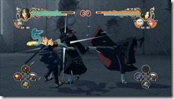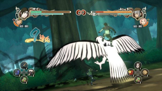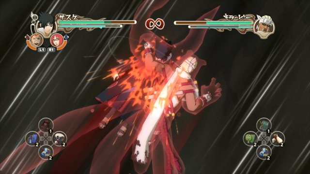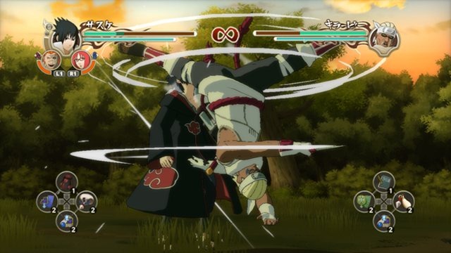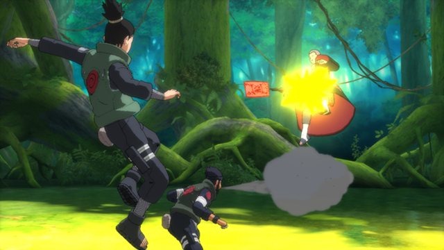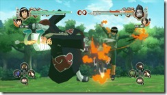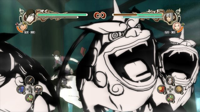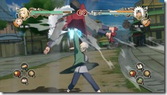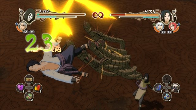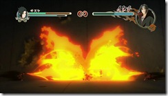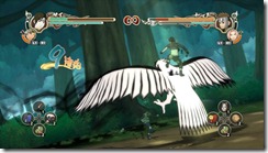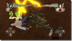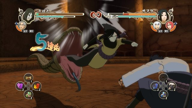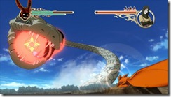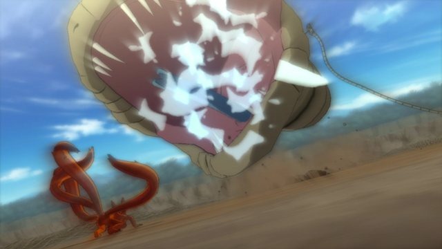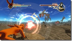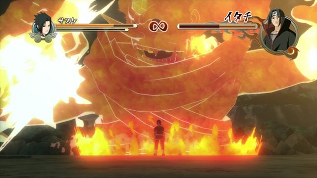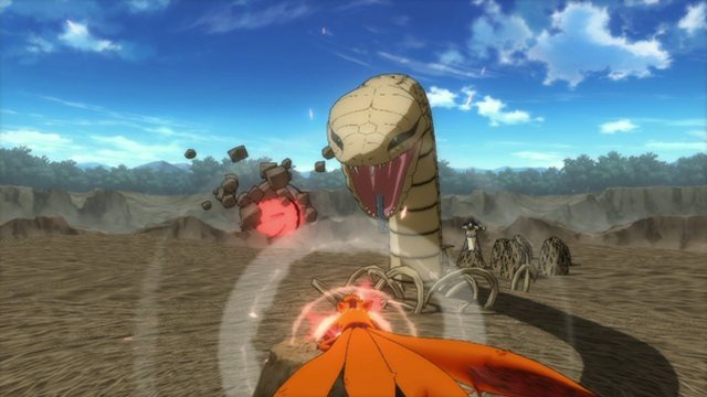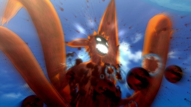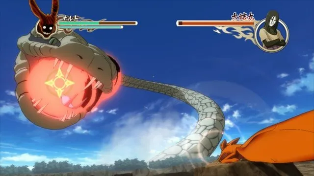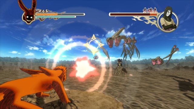 Boss fights in Naruto Shippuden: Ultimate Ninja Storm 2 deviate from regular fights, sometimes in a big way like the battle between Four-Tails Naruto and Orochimaru. From these screenshots, it appears developer CyberConnect2 added an on-rails fight where you blast Orochimaru with chakra spheres.