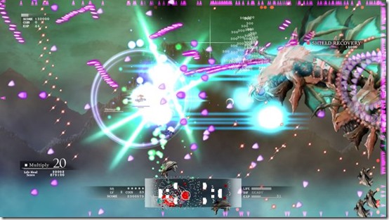 Diadra Empty features characteristic vast fields that are made up of various other screens up, down, left, and right, where you’ll fight plenty of foes in the bullet hell shooter.