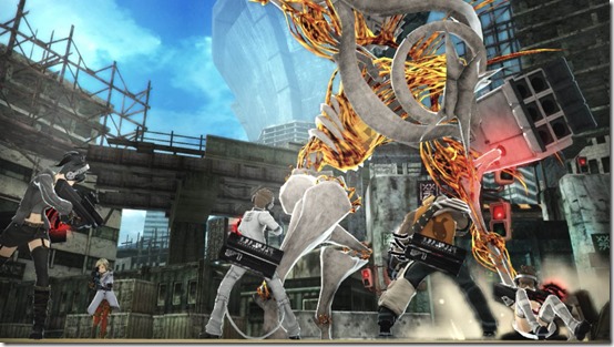 Before you learn how to fully utilize the Ibara whip, Freedom Wars plays quite similarly to other games of its ilk. I was certainly getting a God Eater vibe when I went hands-on with an English demo build of Freedom Wars. In both games you always have access to a melee weapon (a machete, in the demo) as well as a ranged option (sniper rifle).