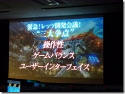 After playing the demo of the game, the first topic covered was about the “controllability”. There was a lot of feedback regarding the cut-scene upon subjugating the Abductor. According to the staff, the intent of this was to notify players of what was going on, but according to the demo players, the game continues on in real-time during the scene, which caused a few problems. In response to this, staff members stated that this is something they’ve also been wondering about, and will most likely make adjustments to make it shorter. On a more positive note, the players praised the feel of the thorn-whip action and its ease of use. In fact, Yoshizawa was actually surprised by one of the pieces of feedback asking if they’d consider using the Vita’s back touch-panel as a way to control the whip.