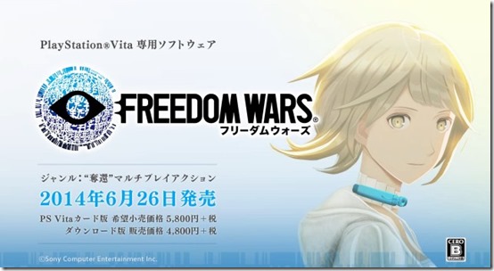 The video ends with some thorn-whipping action, and the special DLC package featuring formal clothes for costumes, a great sword and rocket launcher, and some limited decals for the first-print copies of the game. Freedom Wars will be released in Japan on June 26, 2014 for PlayStation Vita.
