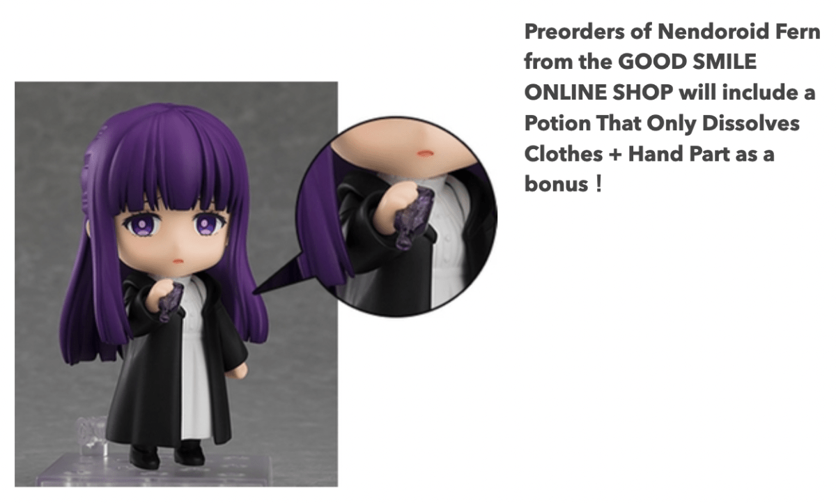 Good Smile Company opened pre-orders for the Frieren Nendoroids of Frieren and Fern ahead of the 2024 debut of the figures. Each one comes with a special bonus part when ordered directly from the company.
