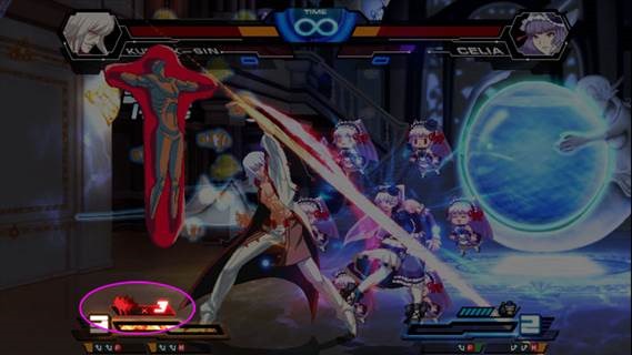 The meter above Chaos Gauge shown at the bottom left of this screenshot is Kudlak Sin’s own meter. This is not in the arcade version. Players can choose to play as Boss after they fulfill certain requirements. What’s the difference between Kudlak Sin and Boss? I’ll leave this to players to find out. Are there any differences between the US version and the release in Asia? Has the translation been improved for the international release? Mickey: There is no difference in content as we want to present the original Chaos Code to players, but we fixed some bugs found in the Japanese and Asian versions and took player’s comments into consideration. Therefore, we included an index to show players the damage the move or combo makes in practice mode.