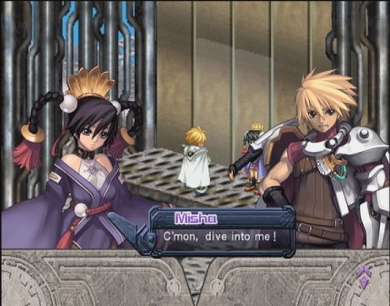 I can’t help but notice while playing Ar Tonelico that it’s full of sexual innuendo. While I may be perverted, I know that the localization editors were having fun with this game. The whole subject of diving seems to have sexual overtones. I’ve even started a collection of screenshots with suggestive dialog.