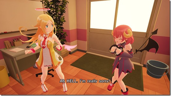 While not officially a heroine, Risu the angel may as well be one. She’s the reason that I was stuck on demon-hunting duty in the first place. Being a loyal employee of the Angel Ring Company, her duty is to make sure that demon hunters fill their quota before taking off the Pheromone Goggles for good. However, because Kurona steals her work ID and angels aren’t allowed to directly interfere with demons, Risu depends on the protagonist retrieve it or face complete expulsion from Heaven. I was able to talk to Risu at any time when at home, and while she initially came off as an airhead (and proves this in the story as well), I was struck by the passion she held for her position. It’s a sort of mix between the weariness of having a job, but also really loving what she does. It’s a relatable sort of earnestness that really endeared her to me.