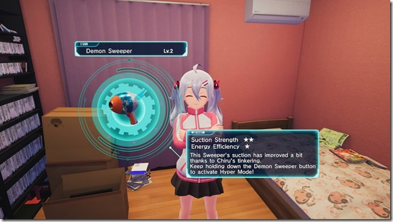Compared to Nanako, Chiru is a relative stranger, as she only moved next door recently. After being a victim of bullying in online video games, she became a shut-in who really only talked to me due to our windows facing each other’s and us having a shared interest in classic video games. Oh, and Chiru’s also great with machinery in general, so she can actually upgrade the Demon Sweeper with the right parts. Chiru’s route really feels more like the classic tale of romance, where the two characters slowly learn more about each other. I found out why she decided to cut off contact with the outside world, how she tricks her family into letting her stay at home, that she is obsessed with mech parts, and even more details. Her events feel shorter and more awkward, due to not knowing each other as well, but there is a genuine connection between the protagonist and Chiru that ignites my shipping senses.