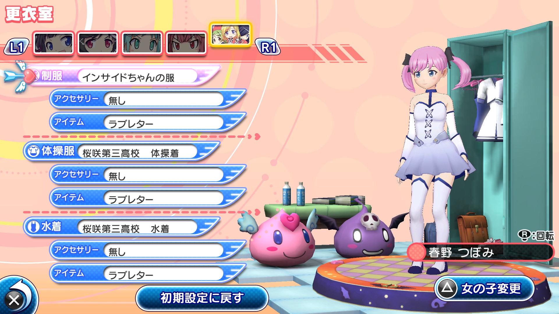 The first one is a look at a costume set that is based on the outfits worn by the girls in the previous Gal Gun game.