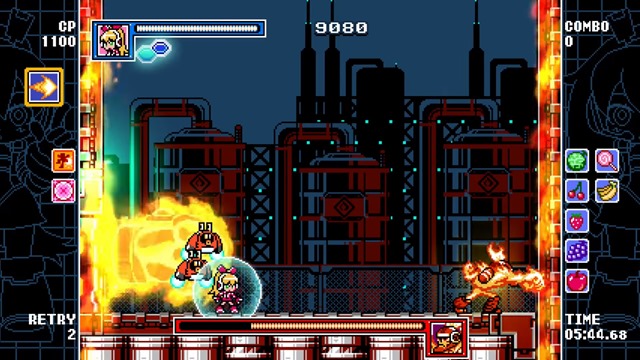 Gal Gun’s Tenzou will be $1.99 when he is added to Mighty Gunvolt Burst and joins as version 1.4 of the game is released. He functions similarly to his Gal Gunvolt Burst counterpart. He usually runs around with Patako trailing behind. Ekoro can come in to fly him up with Angelic Guidance. When triggered, Patako can start a Doki Doki Mode that gives you a temporary reticle to target specific enemies with your Pheromone Shots.