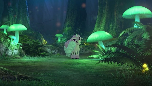 In addition to the Galarian Ponyta details, new screenshots showing clearer views of creatures that appeared during the Glimwood Tangle Forest livestream were released. These give us a chance to see the Cottonee, Galarian Ponyta, Impidimp, Morelull, Phantump, Pikachu, Shiinotic, and Swirlix.