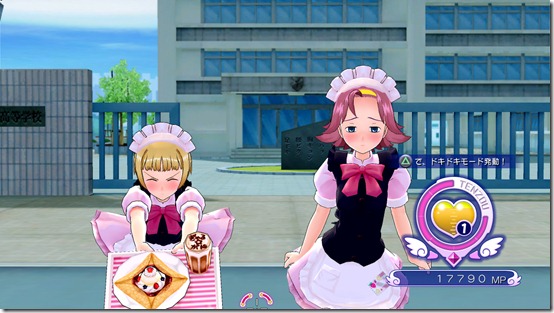 Galgun, the pheromone shooting game from Alchemist and Mega Man 10 maker Inti Creates, has a tie-up with Pinafore, one of Akihabara’s maid cafes. New DLC made for the PlayStation 3 version adds maid uniforms and girls will present berry galettes to you. Usually they try to handout letters of affection and wear school clothes.