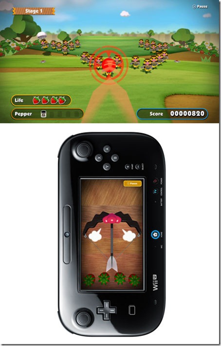 Arrow – This single-player game transforms the GamePad into a hi-tech bow (shaped like Wario’s mustache, of course) and arrow designed to defeat swarming enemies. Players hold the GamePad vertically with one hand to aim at enemies on the TV screen, while using their other hand to pull the arrow on the GamePad’s touch screen.