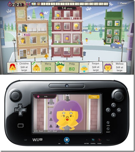 Shutter – In this single-player game, the player must use the GamePad like a telephoto camera lens to take photos of criminals hidden in the town before the time runs out.
